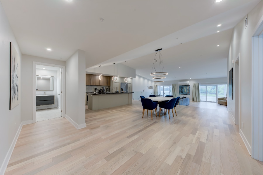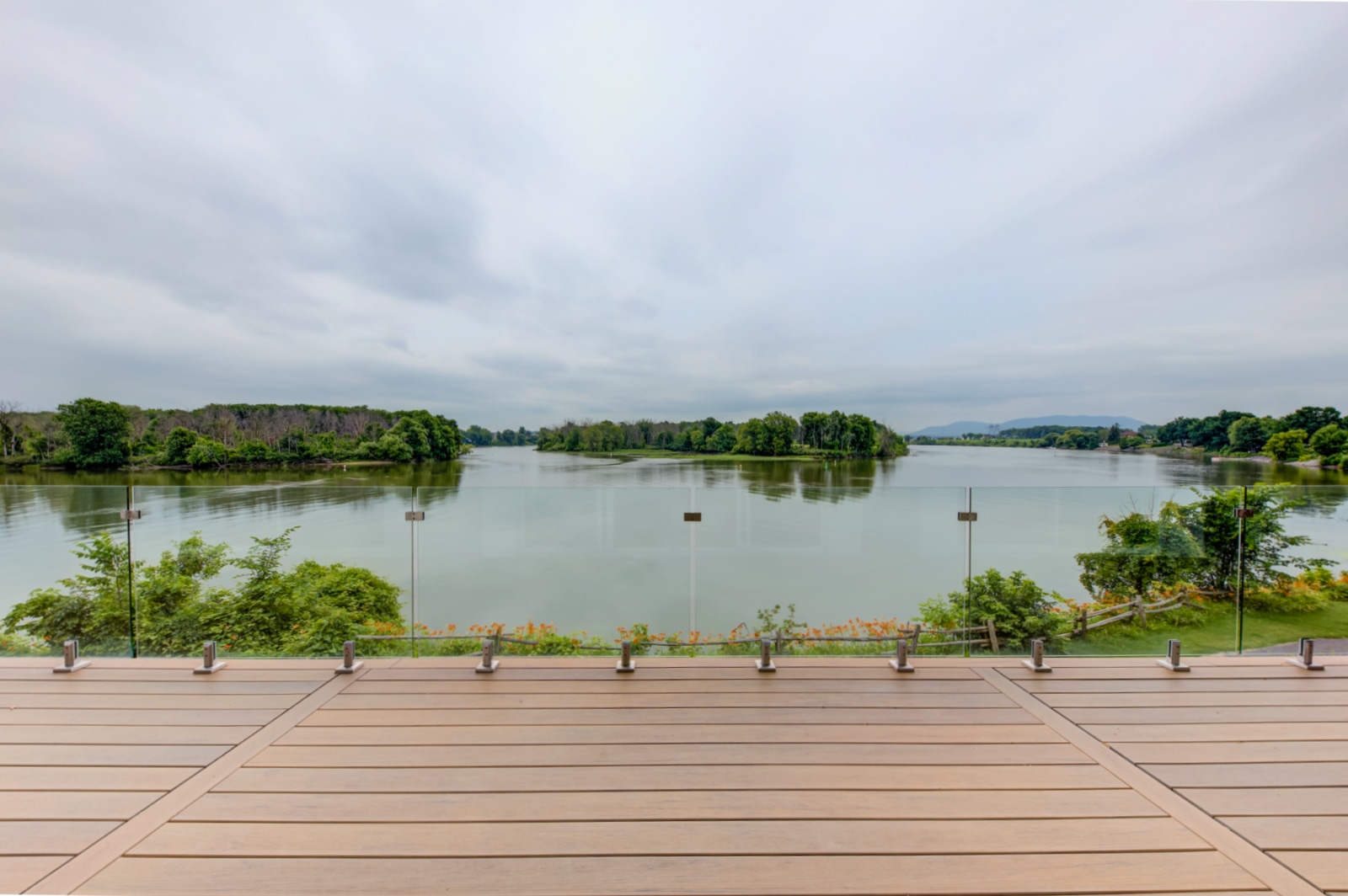 Grands espaces extérieurs avec vue imprenable sur l’eau et accès direct aux quais privés sur la rivière Richelieu.